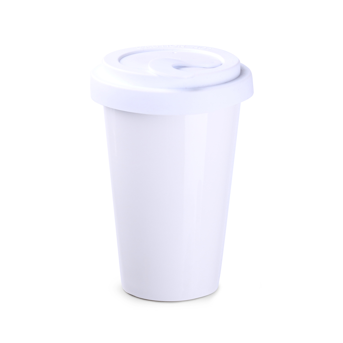 Una tazza in porcellana con coperchio in silicone per evitare fuoriuscite accidentali. Il modello è dedicato alle persone attive e appassionate di viaggio. Grazie alla sua unica struttura interna in porcellana a doppia parete, questa tazza garantisce un maggiore isolamento termico. Il coperchio è disponibile in 8 colori: bianco, arancione, rosso, verde, blu navy, marrone, nero e grigio.
