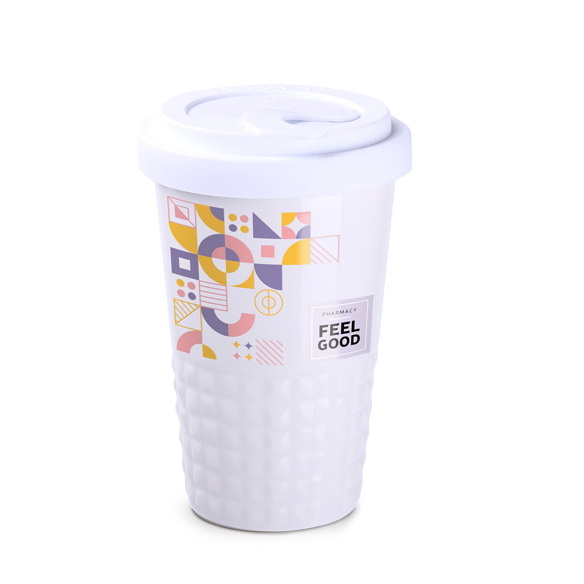 Elegante finitura della parte inferiore della tazza con sporgenze simmetriche simili al bugnato. Porcellana, a doppia parete, che offre un eccellente isolamento termico. Coperchio stretto.
