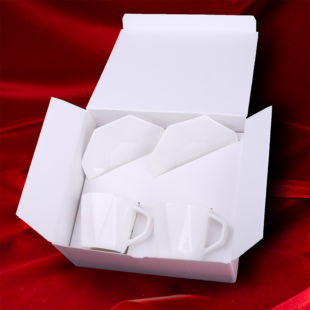 Un set prestigioso composto dalle tazze Tiara Set, realizzate in porcellana Fine Bone China di altissima qualità. Curate nei minimi dettagli, colpiscono per la forma geometrica e moderna. Il set è confezionato in un packaging ecologico dedicato Enlight e completato con una fascia elegante e personalizzata. LA DECORAZIONE PRESENTATA È SOLO A SCOPO ILLUSTRATIVO E NON È INCLUSA NEL PREZZO DEL PRODOTTO. SET IN CONFEZIONE DEDICATA ENLIGHT CON DECORAZIONE SCELTA.